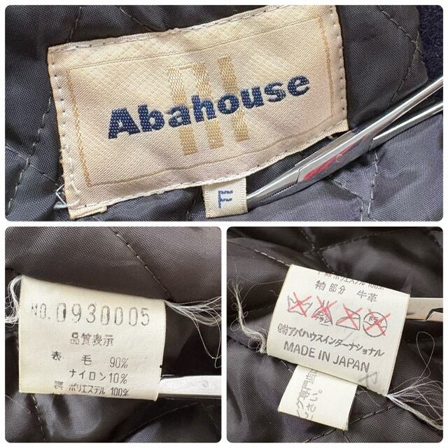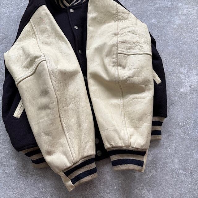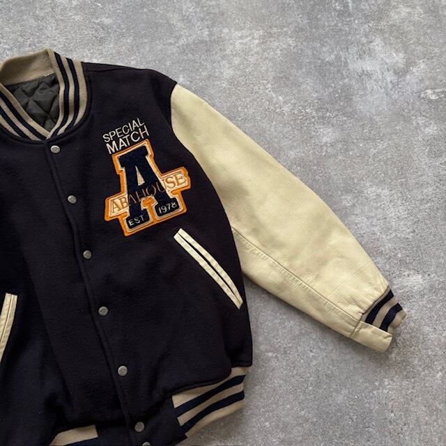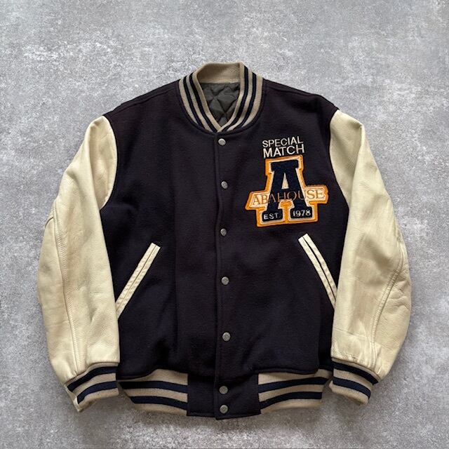 【ABAHOUSE】アバハウス 90s スタジャン ヴィンテージ 刺繍 袖革 バーシティジャケット スタジアムジャンパー 90年代 日本製 ネイビー (F)