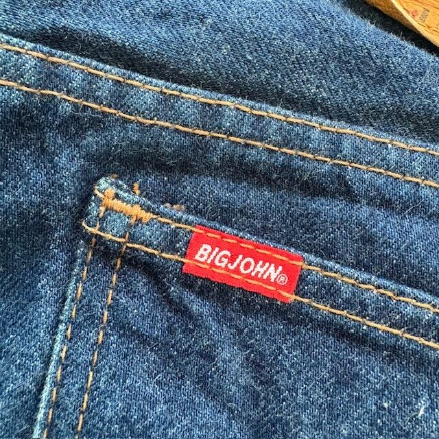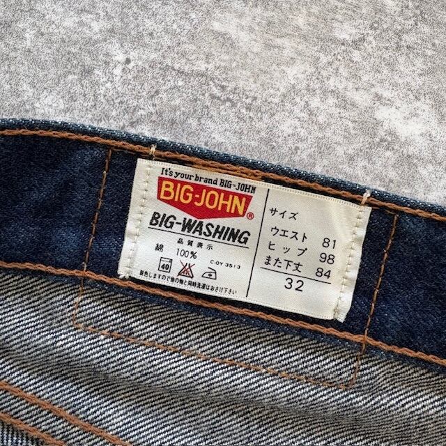 【BIG JOHN】ビッグジョン 90s デニムパンツ ジーンズ ワイドストレート 90年代 ヴィンテージ 濃紺 レザーパッチ 赤タブ アメカジ (W32L33)