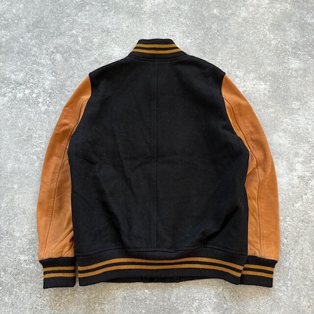 【SHANHOUSE】シャンハウス 山羊革 スタジャン スタジアムジャンパー バーシティジャケット やぎ革 ゴートレザー ブラック 黒 (40)
