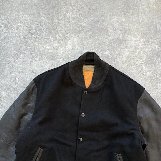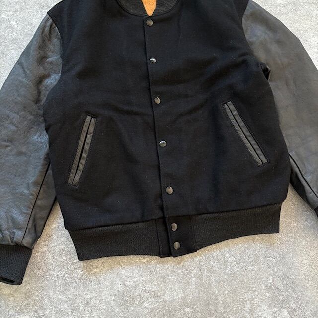 【GOLDEN BEAR】80s ゴールデンベア スタジャン ヴィンテージ スタジアムジャンパー バーシティジャケット 袖レザー USA製 オールブラック