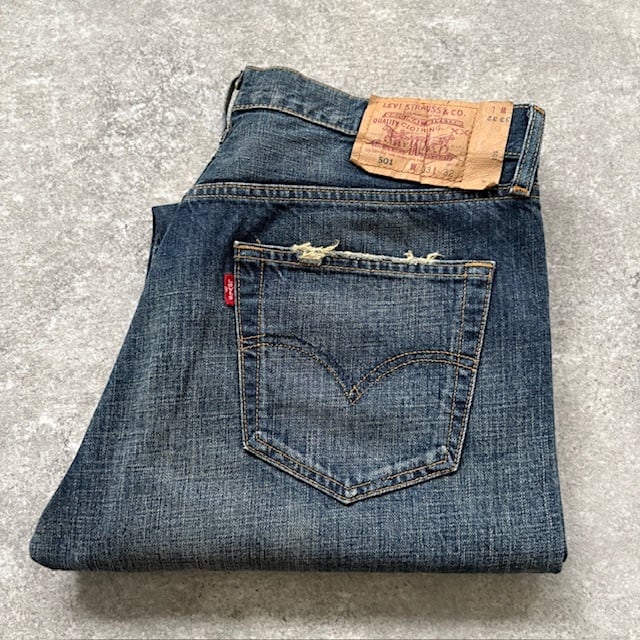 【Levi's】リーバイス501 フィリピン製 デニムパンツ ジーンズ ダメージユーズド加工 紙パッチ最終期 LEVI'S 古着 アメカジ (W33L32)