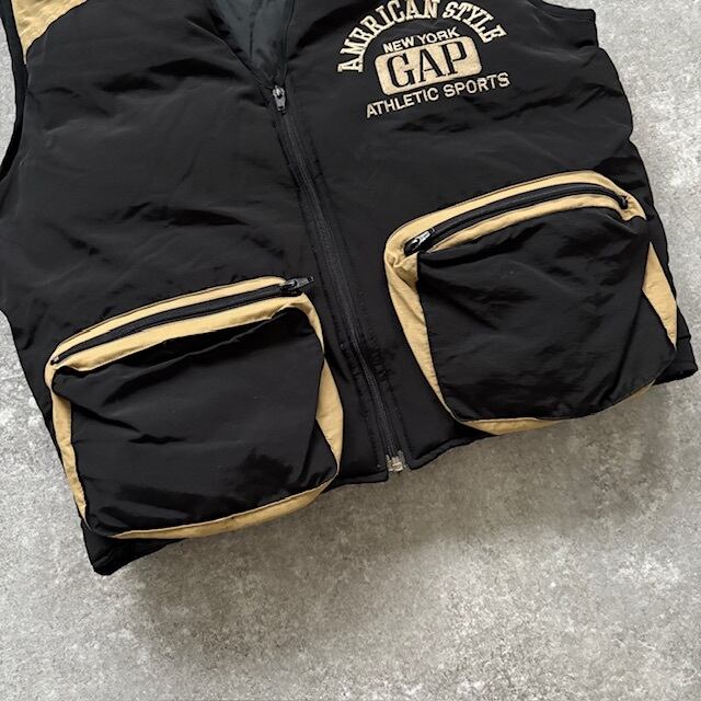 【OLD GAP】オールドギャップ 90s ダウンベスト ヴィンテージ 90年代 刺繍ロゴ 黒 ブラック 切り替え バイカラー アウトドア Y2K (L)