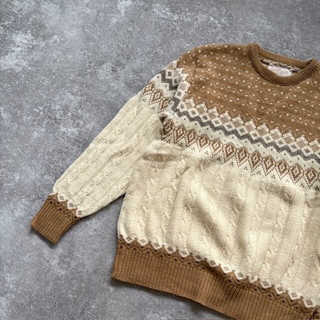 【JANTZEN】ジャンセン 70s ニットセーター USA製 ヴィンテージ 70年代 アメリカ製 ケーブル編み ノルディック 北欧