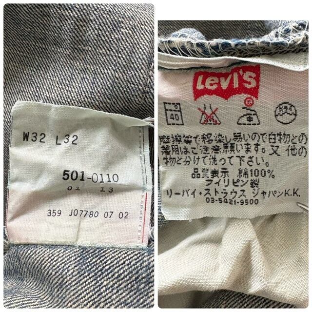 【Levi's】リーバイス501 フィリピン製 デニムパンツ ジーンズ 紙パッチ最終期 トライアングル刻印 ストレート アメカジ LEVI'S (W32L32)