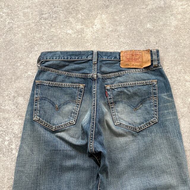501表記に(R)のない紙パッチがまだ付く最終期、さらにボタン裏は“三角刻印”。