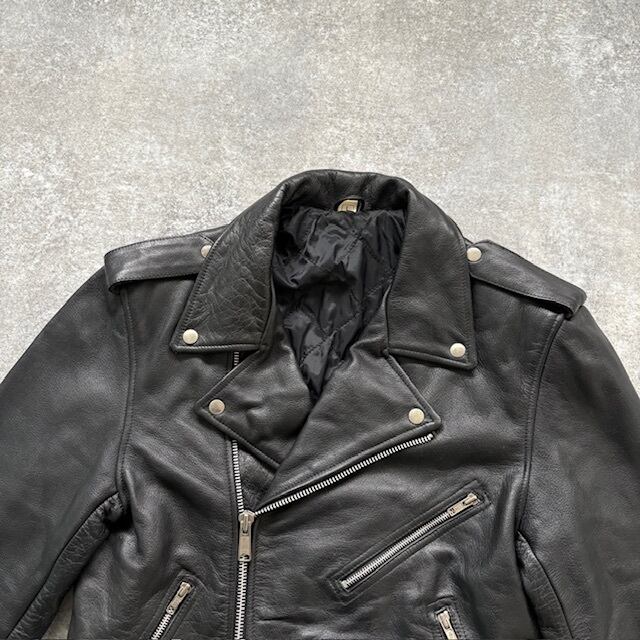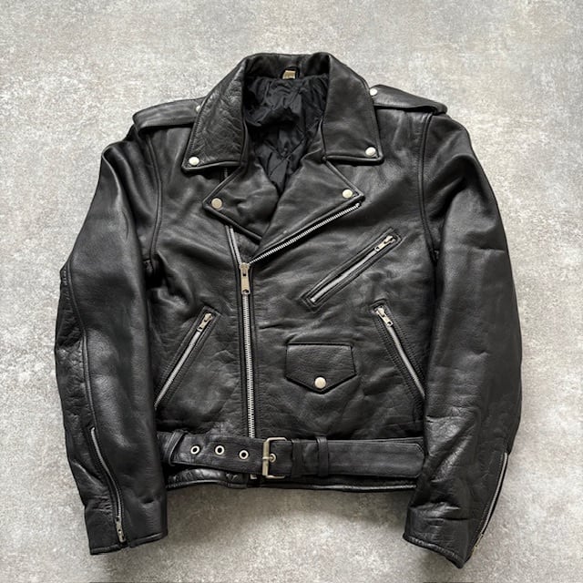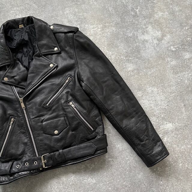【Vintage】90s ヴィンテージ ダブルライダースジャケット レザージャケット 90年代 ヴィンテージ 本革 ブラック カウレザー 黒 牛革 (L)