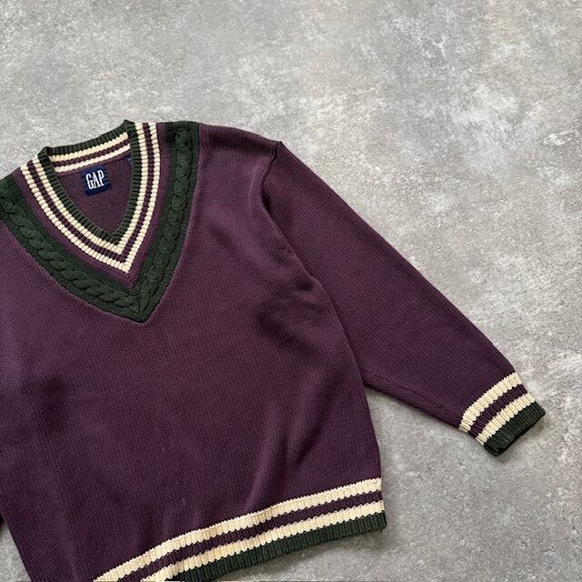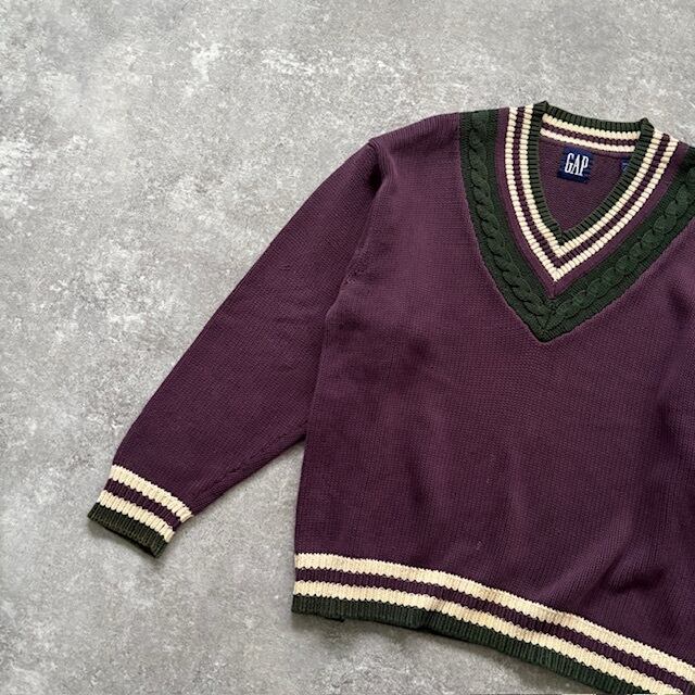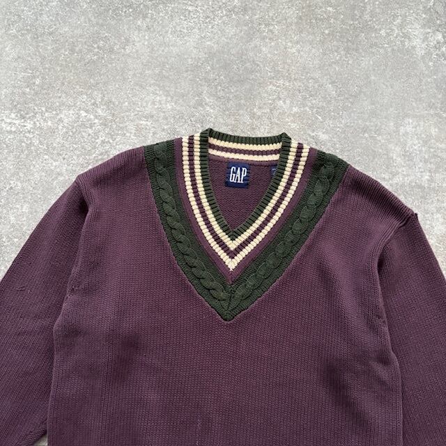 【GAP】オールドギャップ チルデンニット セーター 90s ヴィンテージ 90年代 OLD GAP gap レアカラー Vネック コットン アメカジ トラッド