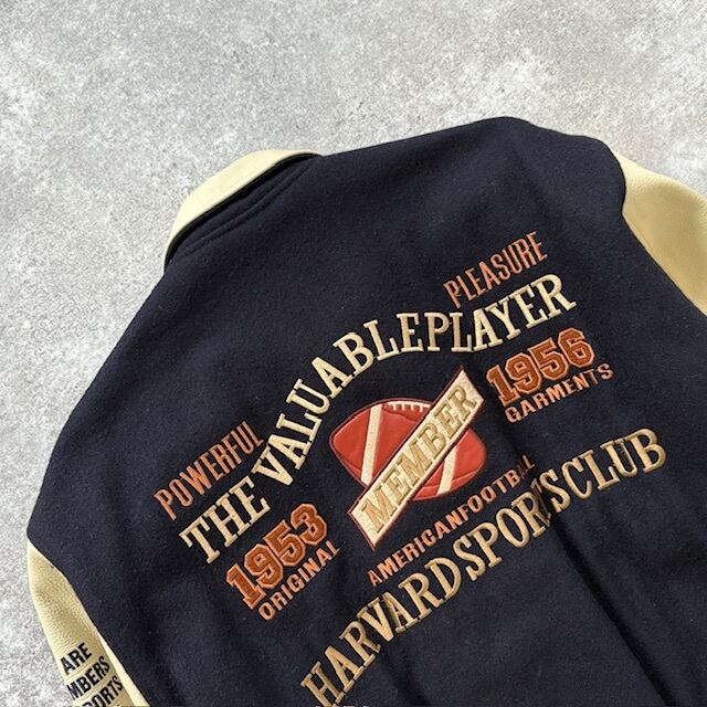 【HARVARD SPORTS CLUB】ハーバードスポーツクラブ 日本製 スタジアムジャンパー スタジャン ラグビー 袖革 90s ヴィンテージ 90年代 紺