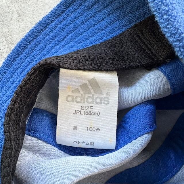 【adidas】オールドアディダス バケットハット パフォーマンスロゴ 刺繍 コットンツイル 帽子 ブルー 6Pパネル 青