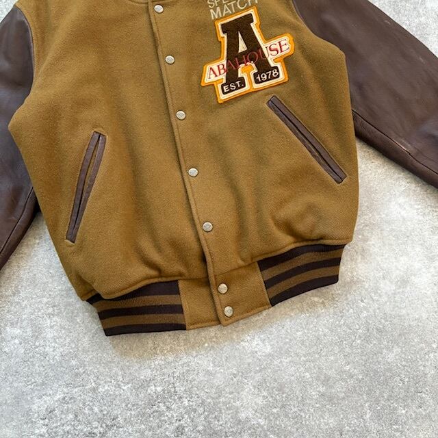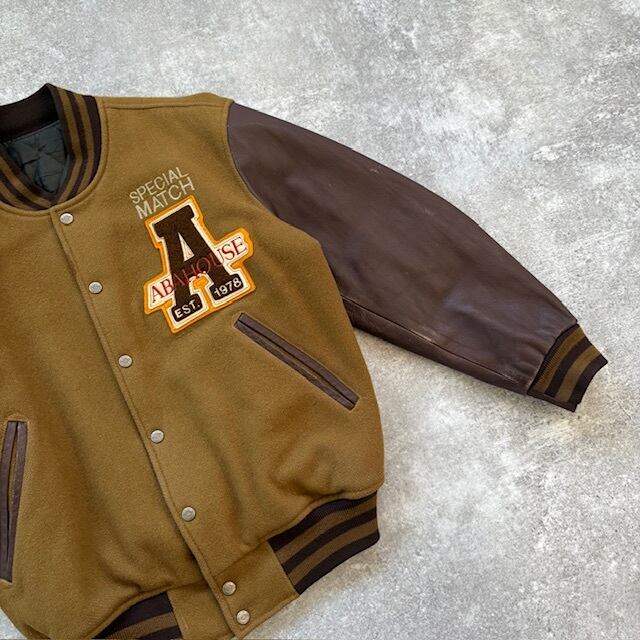 【ABA HOUSE】アバハウス スタジャン スタジアムジャンパー 80s ヴィンテージ 刺繍 袖革 バーシティジャケット レタード 袖レザー (F)
