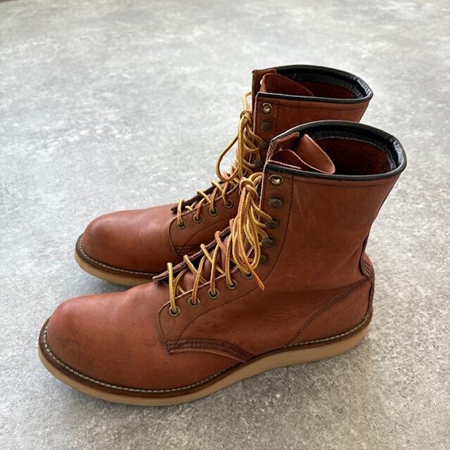 【RED WING】Made in USA レッドウイング 708 ワークブーツ 90s 刺繍羽根タグ 90年代 8インチ プレーントゥ 廃盤 クッションソール (9 1/2)