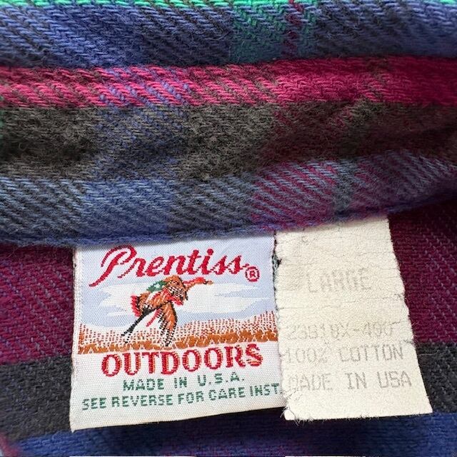 【Prentiss】プレンティス 80s ネルシャツ フランネルシャツ 長袖シャツ USA製 ヴィンテージ 80年代 チェック柄 ワークシャツ (L)