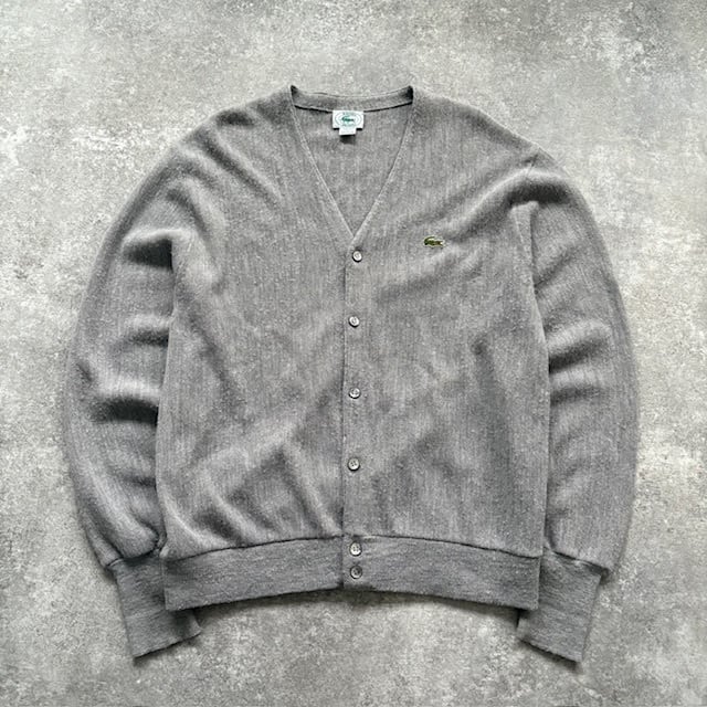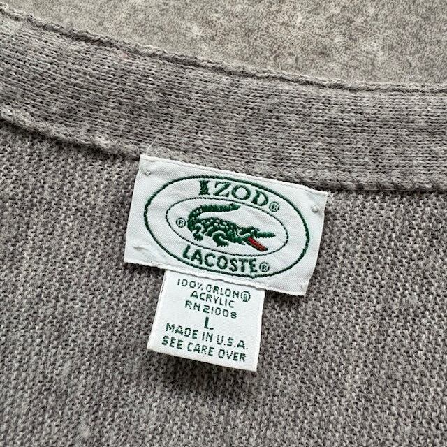 【IZOD LACOSTE】アイゾットラコステ 80s USA製 アクリル カーディガン 80年代 アメリカ製 ワンポイント刺繍 ワニロゴ ヴィンテージ (L)