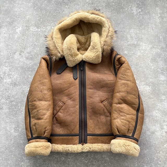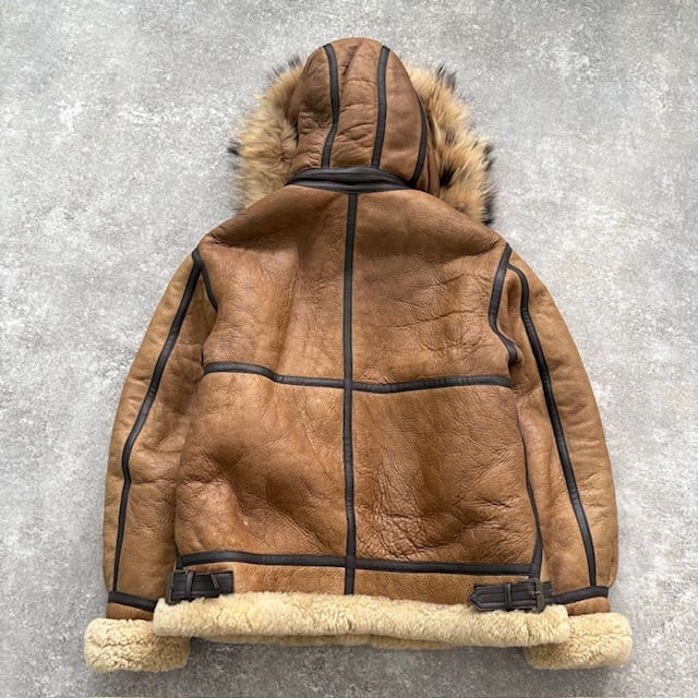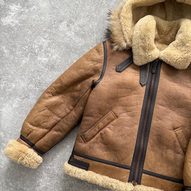 【WESTOP】90s ウエストップ B-3 フライトジャケット ムートンジャケット レザージャケット 90年代 ヴィンテージ ボア フード脱着 (XL)