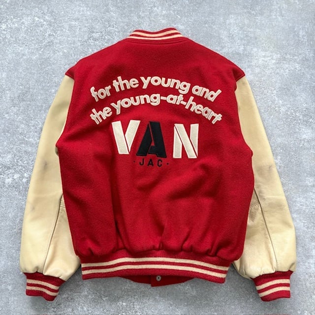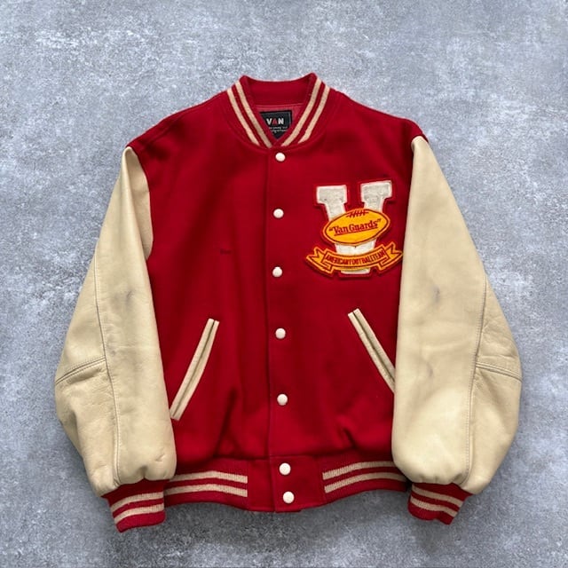 【VAN JACKET】ヴァンヂャケット スタジャン ヴィンテージ 刺繍 袖革 スタジアムジャンパー バーシティジャケット 袖レザー アイビー (L)