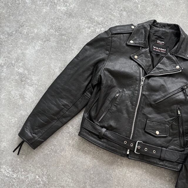 【WILSONS】ウィルソンズ ダブルライダースジャケット レザージャケット Thinsulate ブラック 牛革 バイカー ロック 黒 シンサレート (L)