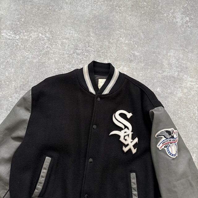 【Vintage】MLB 90s USA製 ヴィンテージ スタジャン ホワイトソックス スタジアムジャンパー バーシティジャケット 刺繍 90年代 レザー袖