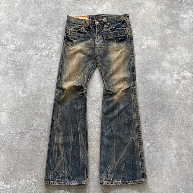 【BLUE WAY】Made in Nippon ブルーウェイ Y2K フレアデニムパンツ 鬼ヒゲ ハチノス ジーンズ ブーツカット アーカイブ ジーパン 日本製