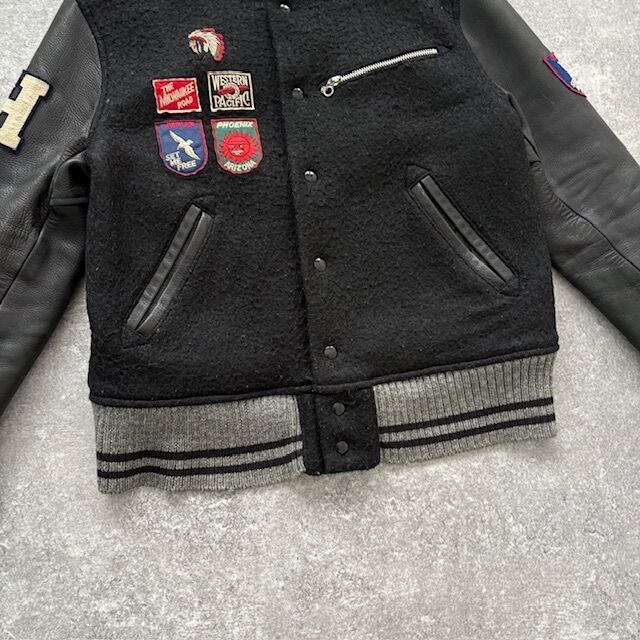【HOLLYWOOD RANCH MARKET】ハリウッドランチマーケット スタジャン スタジアムジャンパー インディアン 刺繍 モヘア調 ブラック 聖林公司