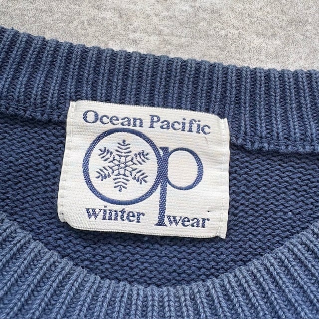 【Ocean Pacific】OP オーシャンパシフィック 70s 雪タグ ニットセーター ヴィンテージ 刺繍 袖ライン ワンポイントロゴ ウィンターライン