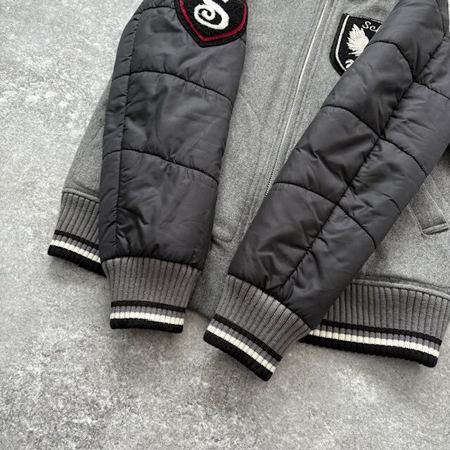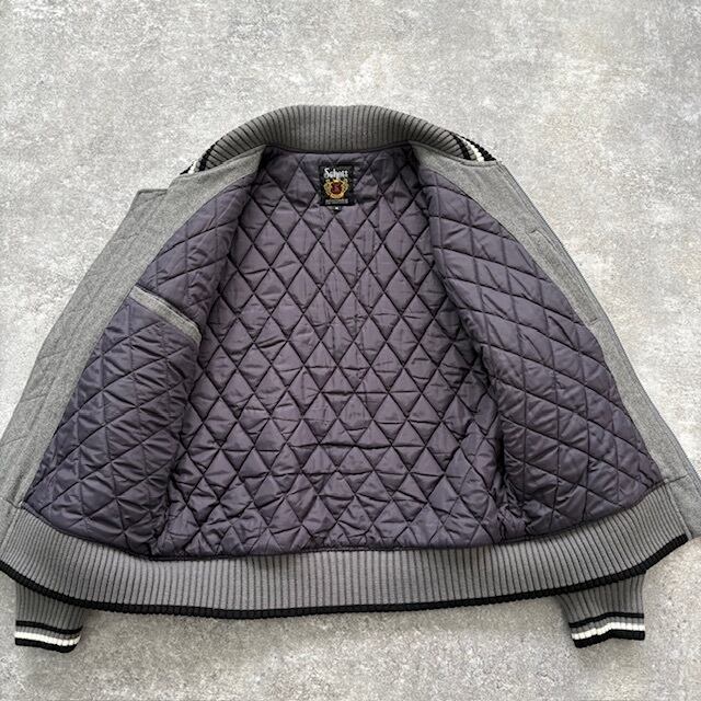 【Schott】ショット 切り替えスタジャン ウールジャケット ブルゾン ワッペン 刺繍 キルティング SCHOTT リブライン グレーブラック (M)