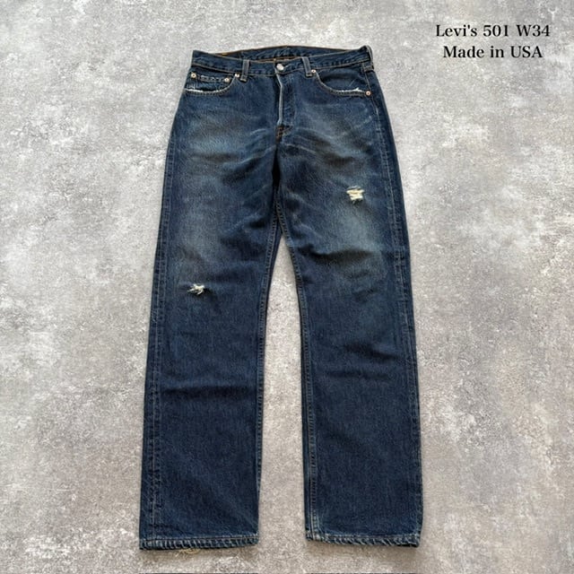 【Levi's】USA製 リーバイス501 デニムパンツ ジーンズ ダメージユーズド加工 ヴィンテージ加工 アメリカ製 00s ミレニアム LEVI'S 米国製