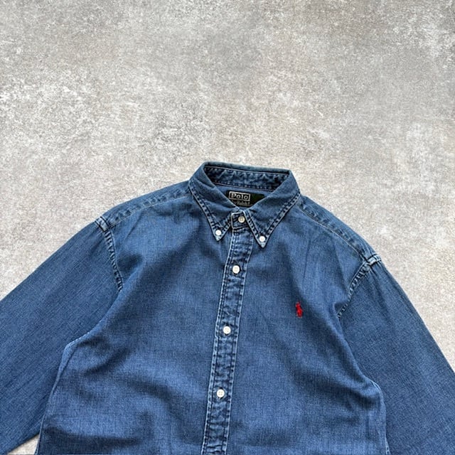 【POLO by RALPH LAUREN】ポロラルフローレン 90s デニムシャツ 赤ポニー 刺繍ロゴ ダンガリーシャツ 長袖 緑タグ ヴィンテージ ナイガイ製