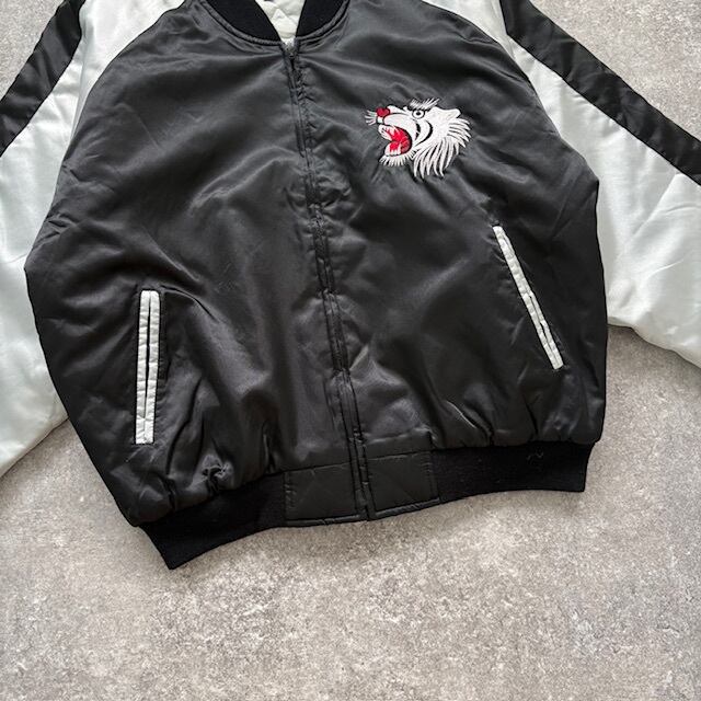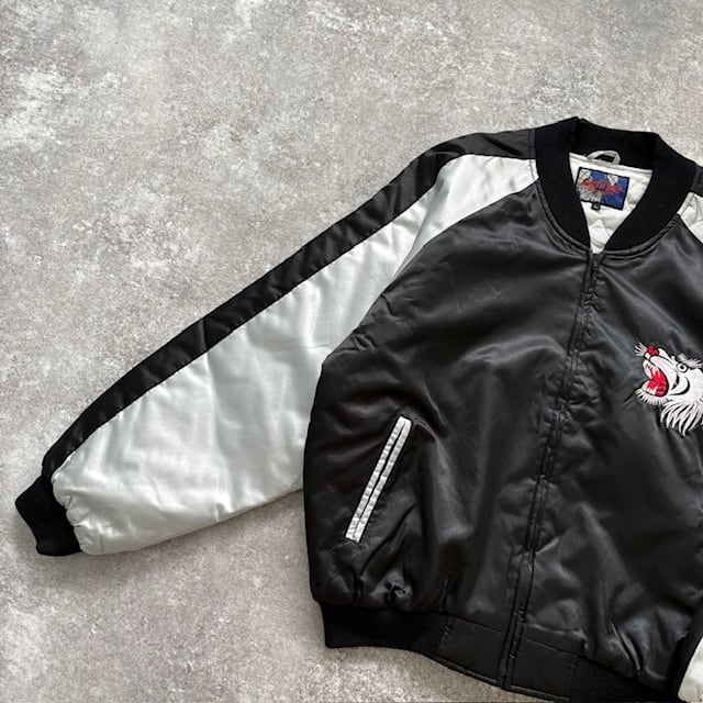 【NORTH SIDE】ノースサイド 90s サテンスカジャン スーベニアジャケット 虎 刺繍 ホワイトタイガー 90年代 ヴィンテージ キルティング裏地