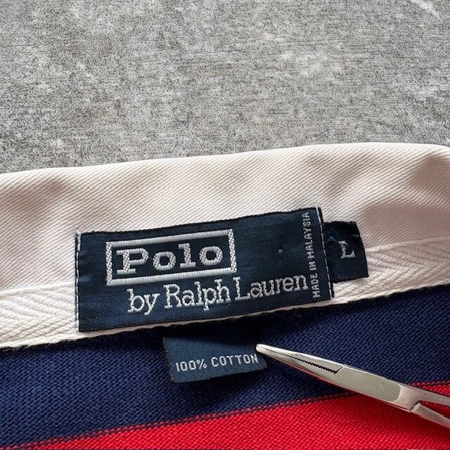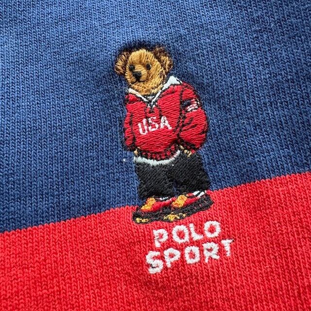 【POLO RALPH LAUREN】ポロラルフローレン ポロベア刺繍 ラガーシャツ 90s 90年代 ヴィンテージ 長袖シャツ ポロシャツ 太ボーダー柄 (L)