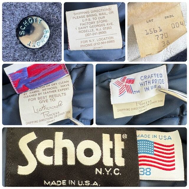 【SCHOTT】ショット 90s USA製 スタジャン サガラ刺繍 ヴィンテージ スタジアムジャンパー バーシティジャケット 90年代 袖革 美品 (38)