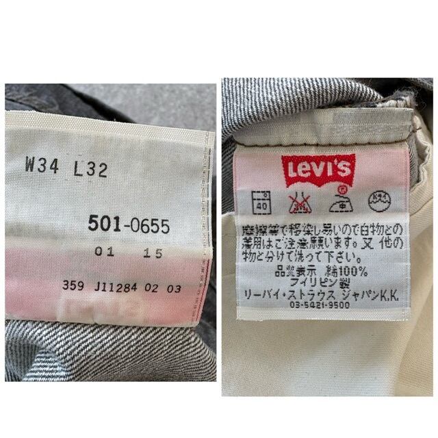 【Levi's】Made in Philippines リーバイス501 ブラックデニムパンツ 先染め フィリピン製 ジーンズ 501表記最終期 紙パッチ 黒 (W34L32)