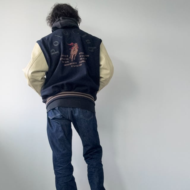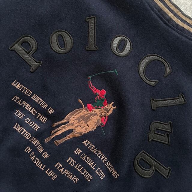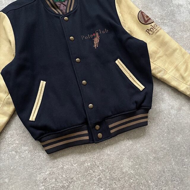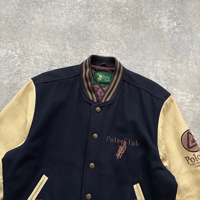 【Polo CLUB】ポロクラブ 90s スタジャン スタジアムジャンパー バーシティジャケット 刺繍 レザーアーチロゴ 90年代 ヴィンテージ 袖革