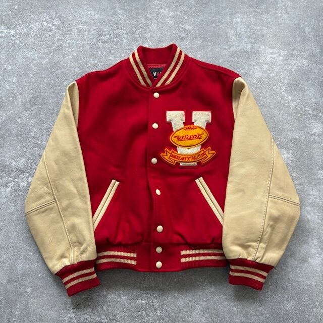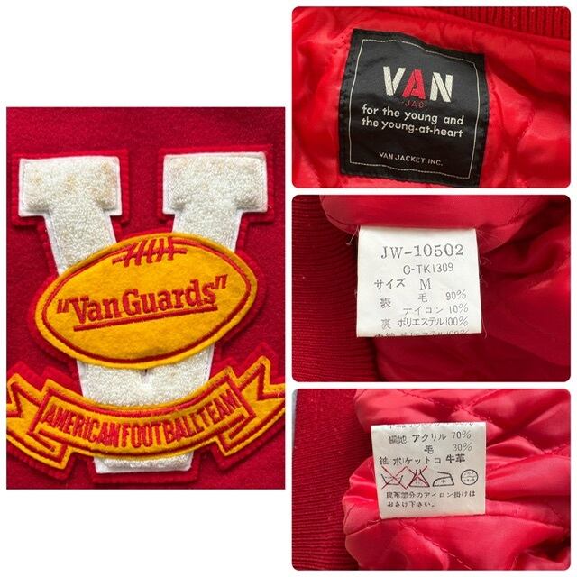 【VAN JACKET】80s ヴァンヂャケット スタジャン 短丈 ヴィンテージ スタジアムジャンパー 袖レザー 袖革 80年代 ワッペン刺繍 アーチロゴ