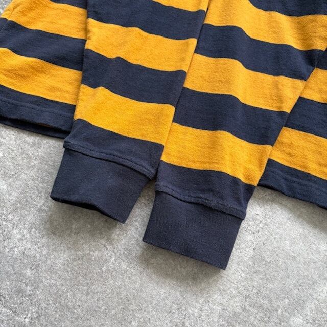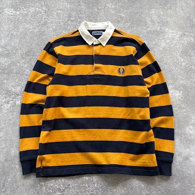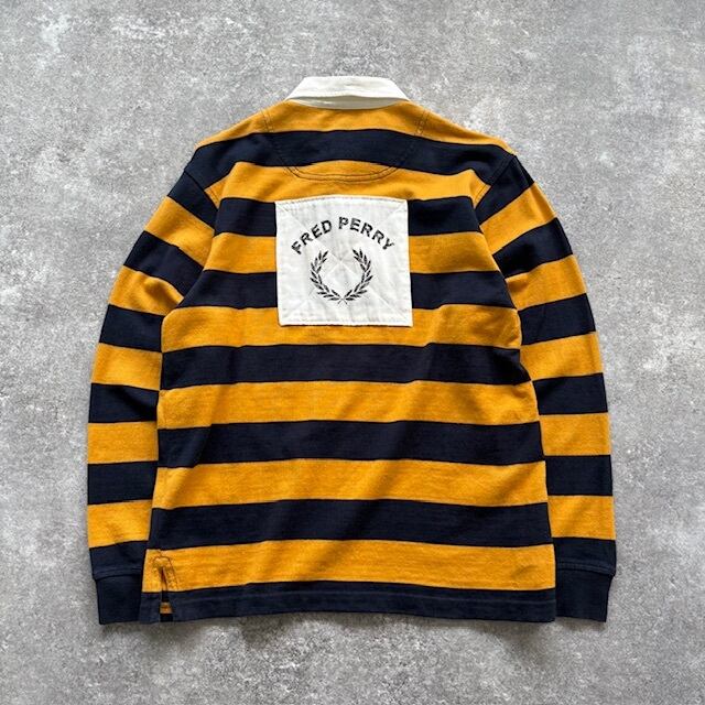 【FRED PERRY】フレッドペリー ラガーシャツ ボーダー 月桂樹 刺繍 長袖シャツ ラグビーシャツ バックロゴ ネイビー × マスタード 希少