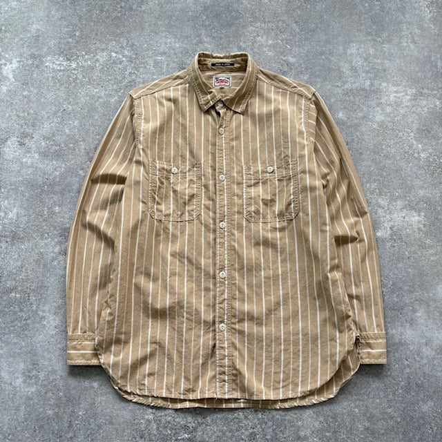 【HOUSTON】MADE IN JAPAN UNION MADE ヒューストン ストライプ 長袖シャツ クラシックワークシャツ マチ付き アメカジ コットン 日本製