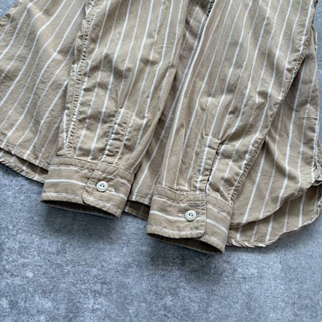 風をはらんで、ストライプがふわっと動く感じがいいんですよ。軽く袖を捲ったくらいにして。