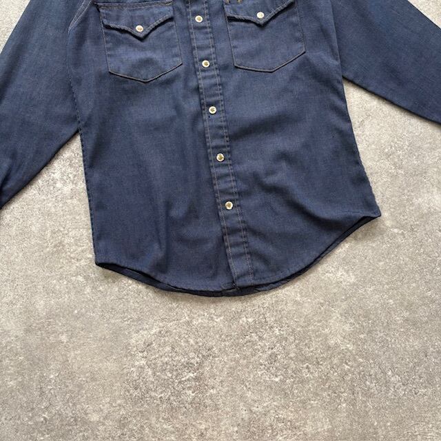 【Sears】ROEBUCKS 70's シアーズ ローバックス デニムウエスタンシャツ 長袖シャツ インディゴ 70年代 ヴィンテージ 濃紺 塗装ボタン レア