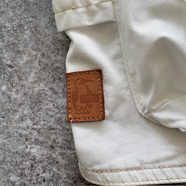 でもCHUMSらしく、無骨すぎないこのオフホワイト。アウトドアの服なのに、街でも普通に成立する色。切り替えしも◎