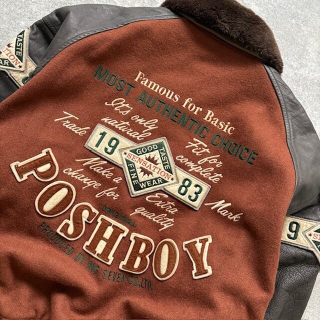 【POSH BOY】80s ポッシュボーイ スタジャン 刺繍 スタジアムジャンパー バーシティジャケット ヴィンテージ 80年代 希少リバーシブル 袖革