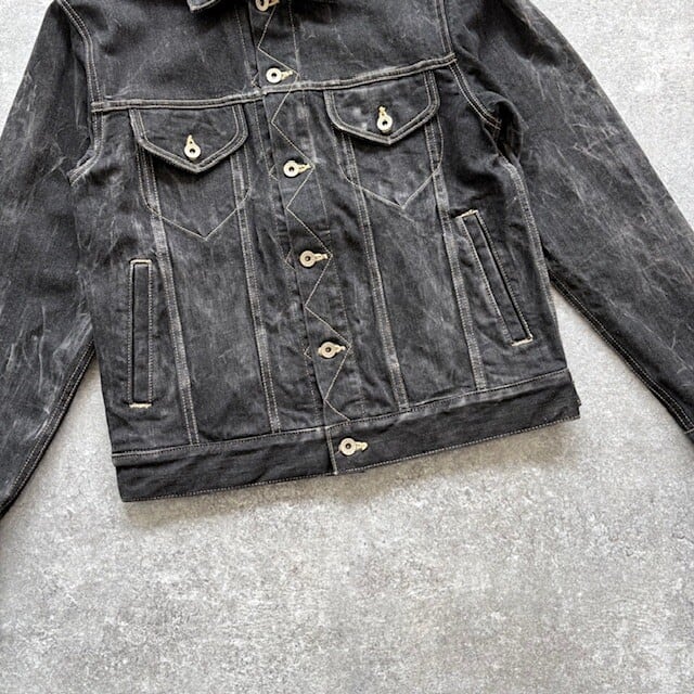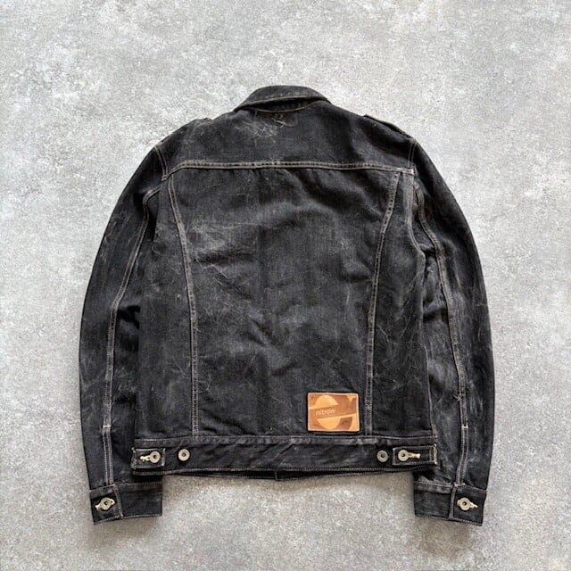【nitrow】nitraid ナイトロウ ナイトレイド 00s Y2K ブラックデニムジャケット ジージャン ユーズド加工 トラッカージャケット 革パッチ