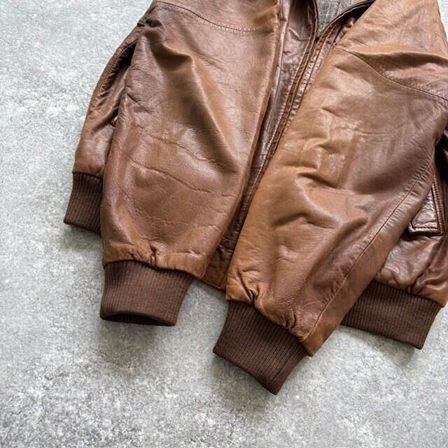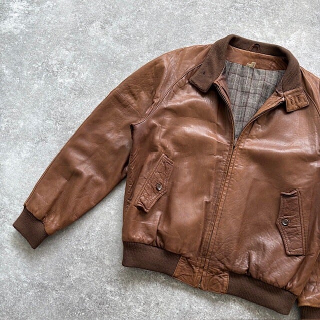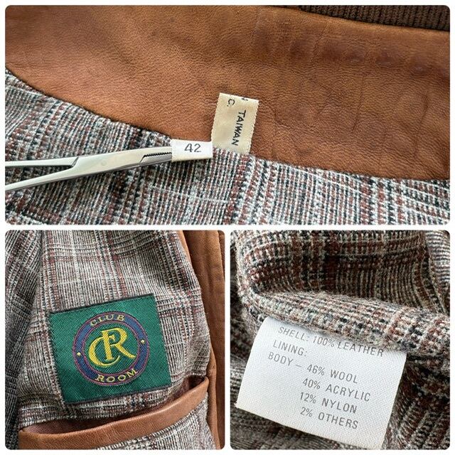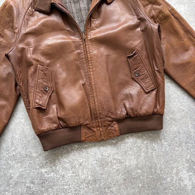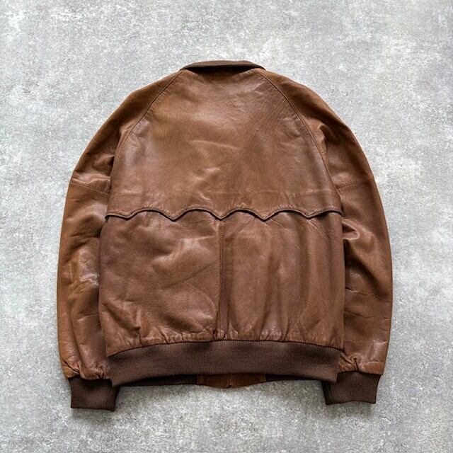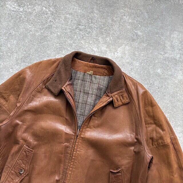 【CLUB ROOM】クラブルーム 90s レザー ハリントンジャケット 本革 短丈 レザージャケット ブルゾン スイングトップ アンブレラヨーク (42)