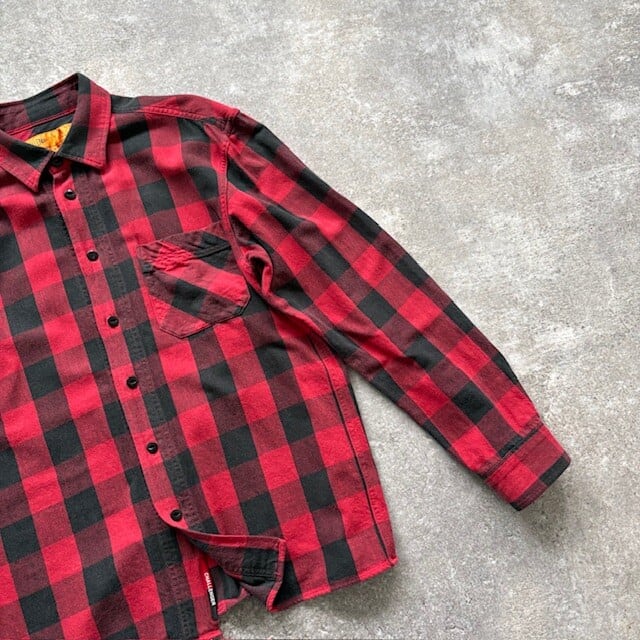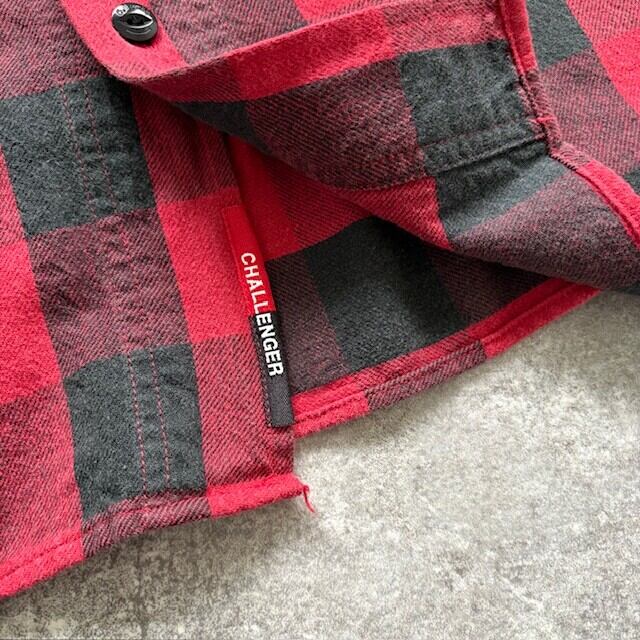 【Challenger】チャレンジャー バッファローチェックシャツ 長袖シャツ ブロックチェックシャツ 日本製 猫目ボタン 赤黒 (M)