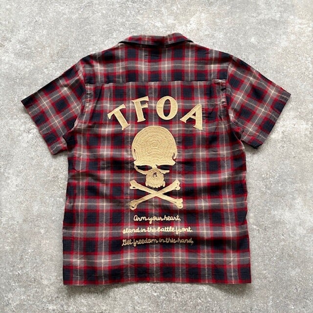 【Cropped heads】クロップドヘッズ CROWS TFOA オープンカラーシャツ 半袖シャツ スカル刺繍 クローズ 開襟シャツ 骸骨刺繍 (L)