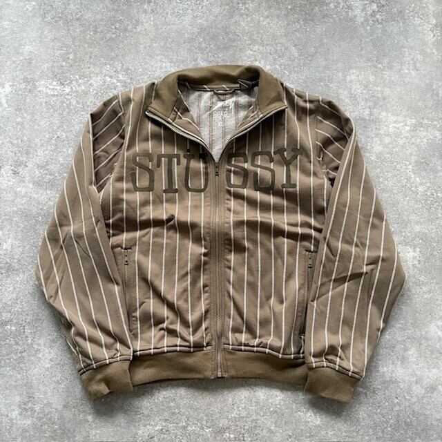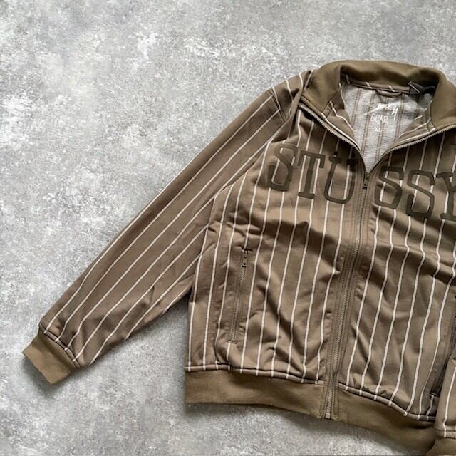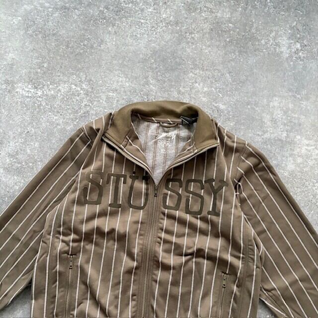 【STUSSY】90s オールドステューシー ストライプ トラックジャケット ジャージ ジップスウェット 90年代 OLD ワッペン オリーブグリーン