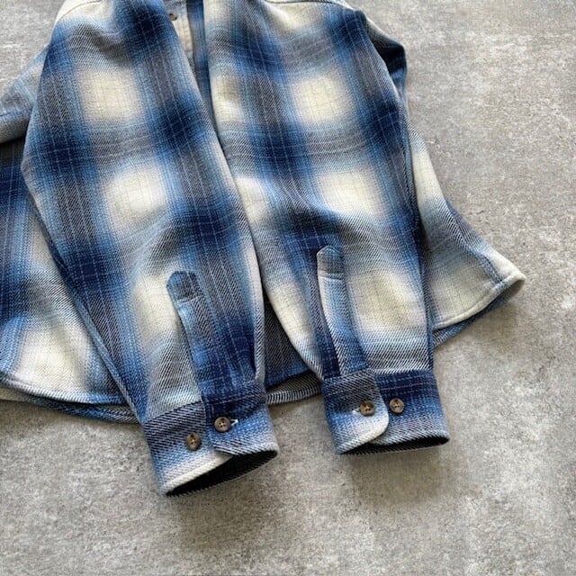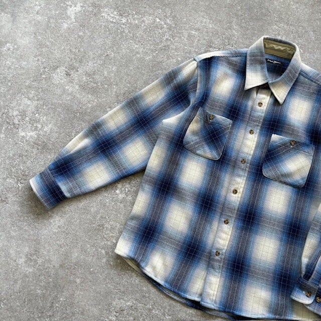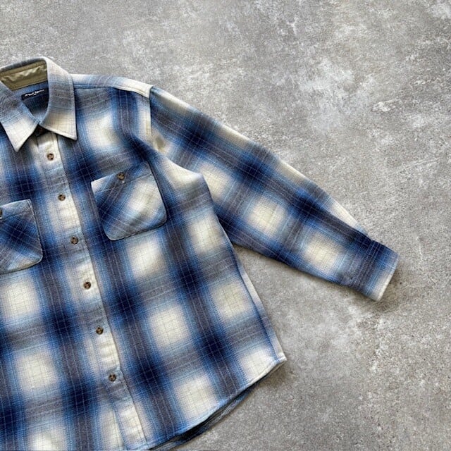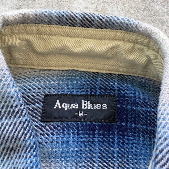 【Aqua Blues】90s オンブレチェック シャドーチェック ヘビーフランネルシャツ ネルシャツ 90年代 ヴィンテージ グラデーション 古着 (M)