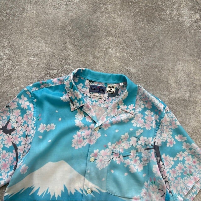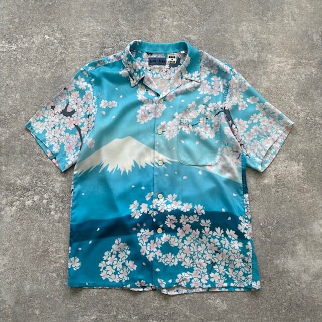 【HOLLYWOOD RANCH MARKET】BLUE BLUE ハリウッドランチマーケット ブルーブルー アロハシャツ 富士山と桜 半袖シャツ ハワイアンシャツ