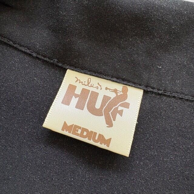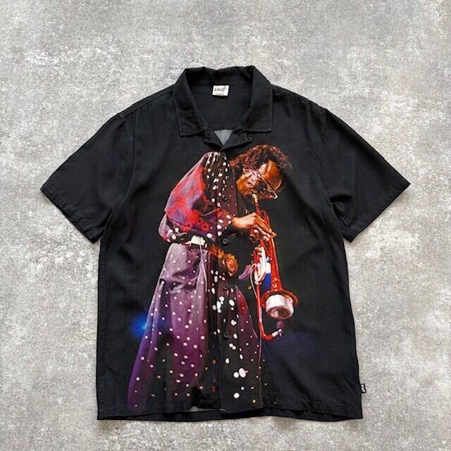 【HUF】MILES DAVIS YESTERNOW ハフ マイルス・デイヴィス アロハシャツ レーヨン 半袖シャツ オープンカラー フォトプリント ブラック (M)