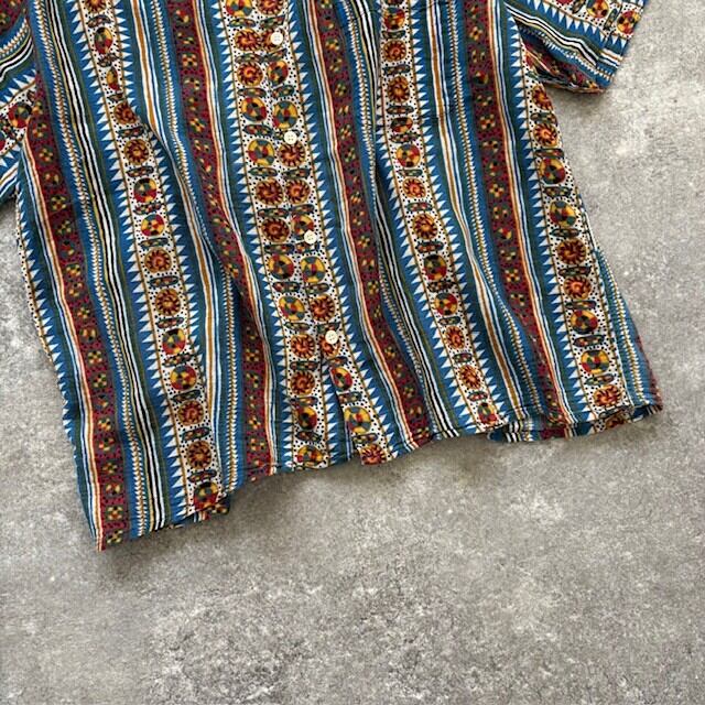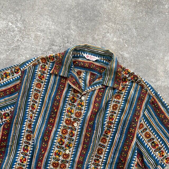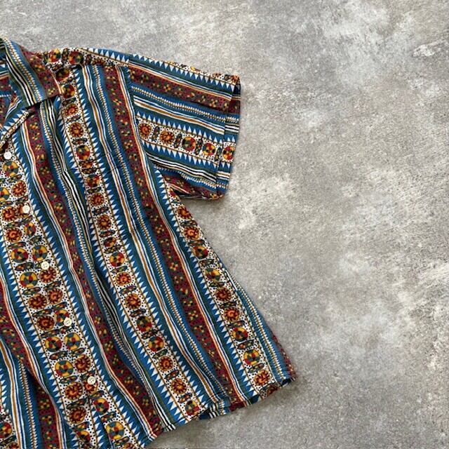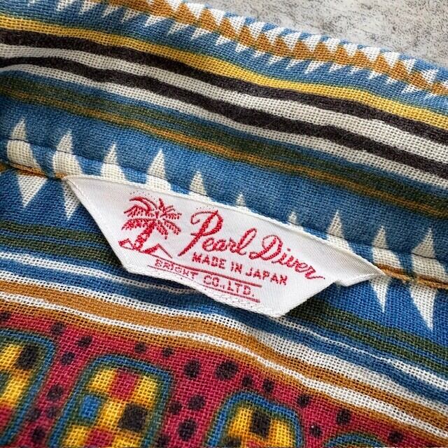 【Peari Diver】90s パールダイバー アロハシャツ ハワイアンシャツ ボーダー柄 半袖シャツ オープンカラーシャツ ヴィンテージ 総柄