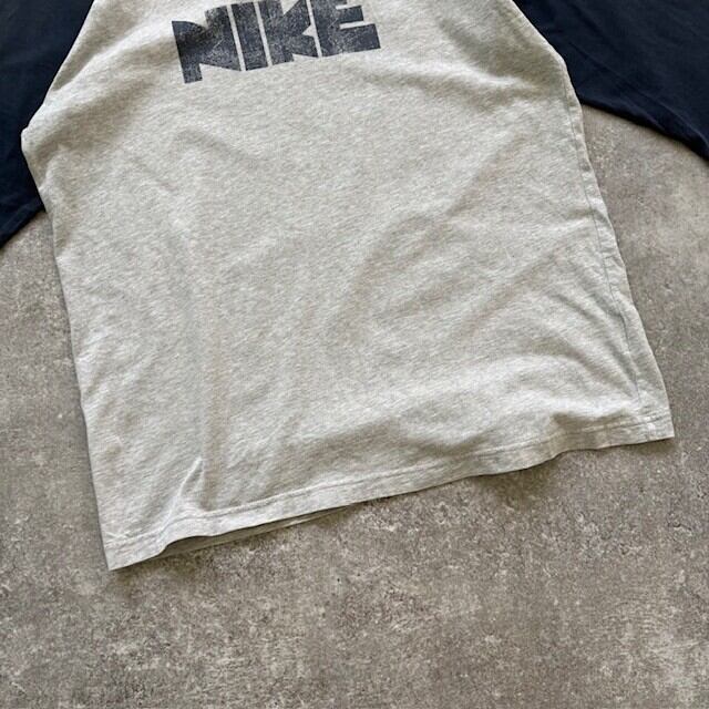 【NIKE】ゴツナイキ ラグランスリーブ 七分袖tee Tシャツ ヴィンテージ復刻デザイン 半袖tシャツ 切り替え ユーズド加工 00s (XXL)