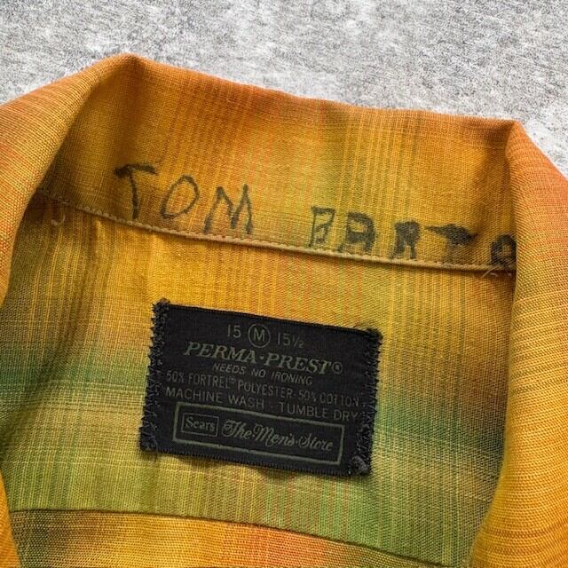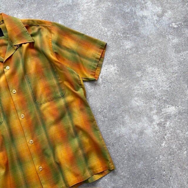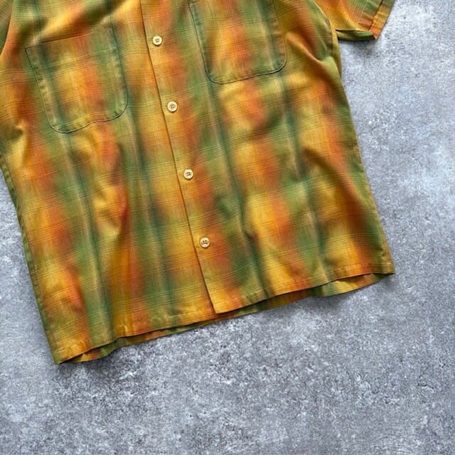 【Sears】70s シアーズ オンブレチェック 半袖シャツ オープンカラーシャツ シャドーチェック グラデーション ループカラー ヴィンテージ